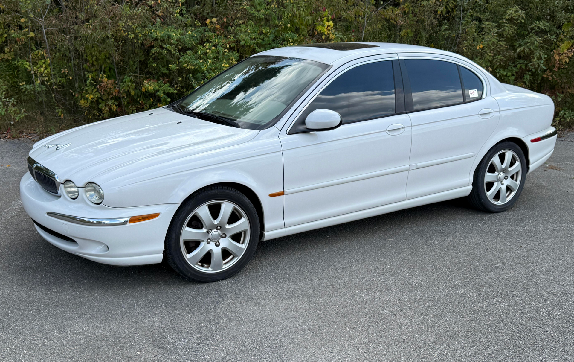 2004 Jaguar X Type, AWD, 3.0 V6, auto trans, 4 door sedan with 81,675 miles ,VIN: SAJEA51C24WD70138,white exterior, saddle color interior, tinted windows ,good tires, front seat covers over worn leather seats. Seller just spent over $2.000.00 for tune up, oil change, and once over inspection. Car starts, runs and drives as it should.