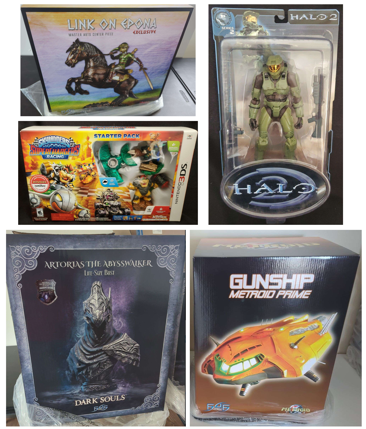 This auction features rare XBOX Halo & Star Wars Console Bundles, Many NEW Exclusive Gaming Heads and First 4 Figures Statues opened for inspection, Lot's of HALO figurines new in cardstock, Many Amiibo figurines new in cardstock.