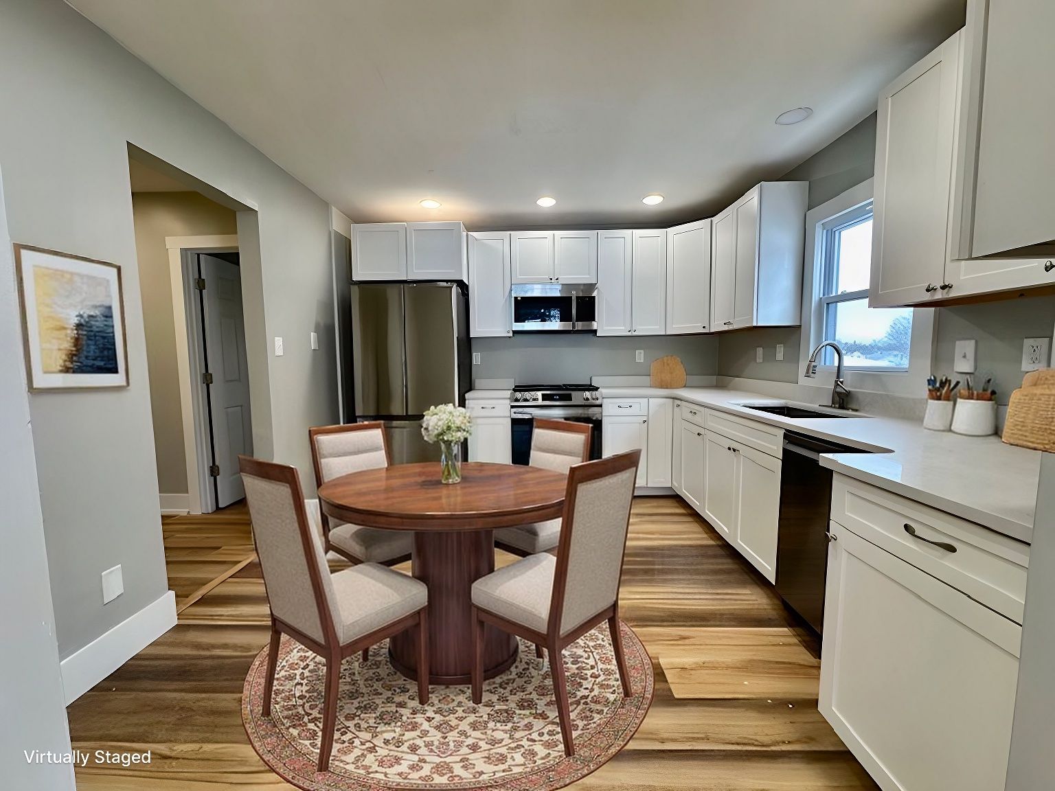 Spring has sprung and now it's time to jump on this deal! PRACTICALLY BRAND NEW! This classic tudor-style 4 bedroom, 2 1/2 bath home was taken down to the studs, re-configured and is move-in ready. The covered front entryway with arched front door opens up to a foyer which leads to the front living room with faux fireplace and large picture window for natural light. The kitchen is COMPLETELY NEW with white cabinets, Quartz countertops and SS appliances. The kitchen is open to the 1st floor laundry room with a half bath. At the back of the house is the HUGE Primary bedroom with room-sized walk in closet and a brand new bathroom. Upstairs you'll find 3 spacious bedrooms, a new full bathroom with storage closet and a sitting room for reading or study area. The basement has a new gas furnace, central AC, hot water tank and glass block windows. The remodel also includes: new electric throughout, new plumbing, a new sump pump, new gutters, freshly painted exterior and interior, new vinyl windows, new blacktop drive with double parking in the rear, new drainage system, new insulation, a new side door, all new fixtures and luxury vinyl plank flooring throughout. The roof shingles are approx. 5 years old. Located conveniently to all Boardman has to offer! This home is a gem and ready to welcome its new owner! It is virtually staged to give you a vision! It is also located behind (what is under construction) the new water park! How fun is that?! Call today to schedule your private showing. Broker owned.